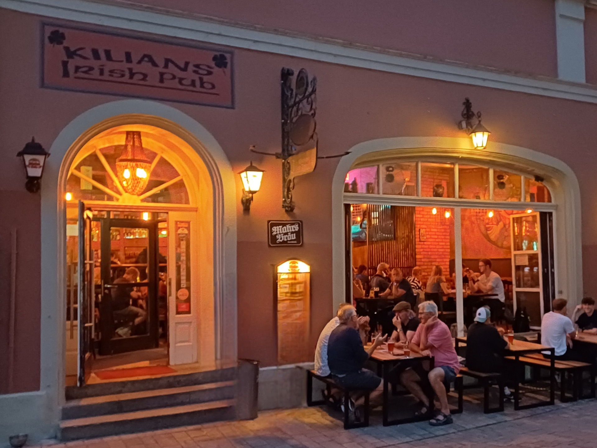 - Interior: Restaurant and pub in Old-Irish style, combination of wooden and brick panelling, wooden furniture, unpholstered leather bences, ceiling with ornaments